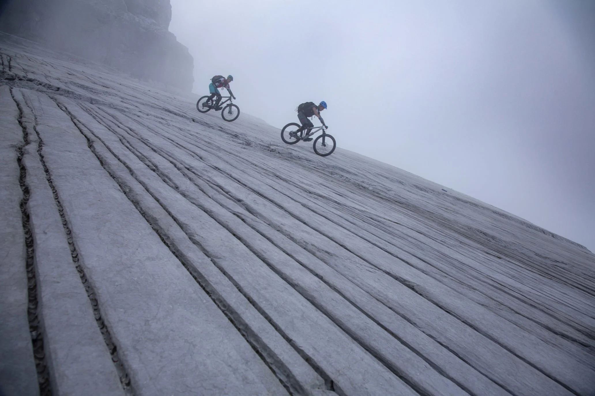 Wir haben es getan! Über Jahre hat uns eine riesige Felsplatte im Rätikon angelächelt. Sie schrie förmlich danach, mit dem Mountainbike befahren zu werden. Der einzige Haken: Die Platte liegt mitten in einer senkrechten Felswand. Wenigstens 60 Höhenmeter Kletterei sind erforderlich, um auf die Platte zu gelangen. Aber klettern mit Bike? Geht das überhaupt? Zeit, es herauszufinden!