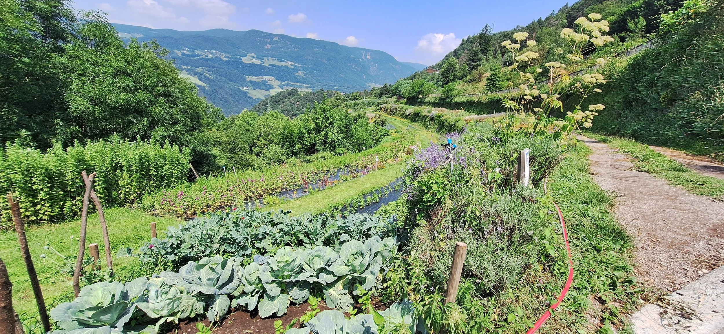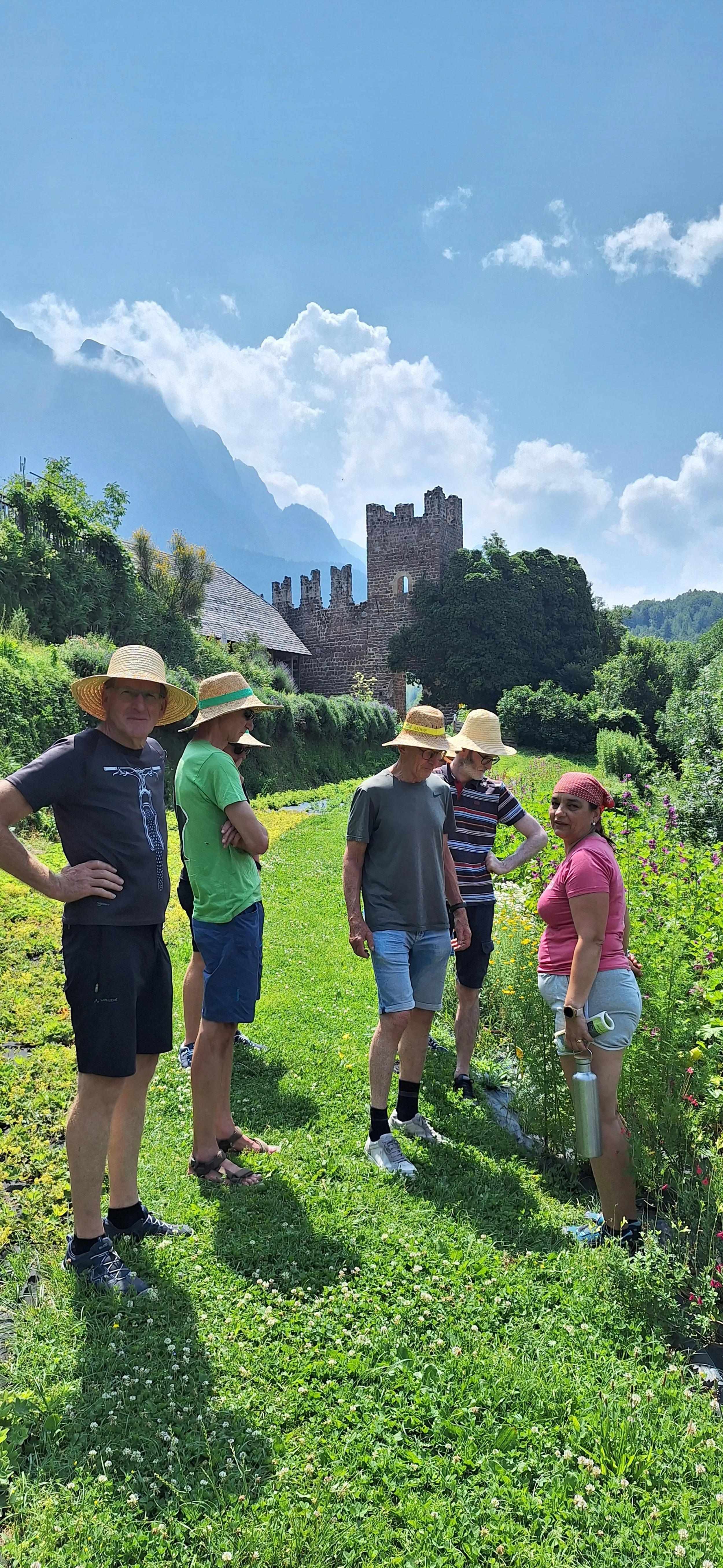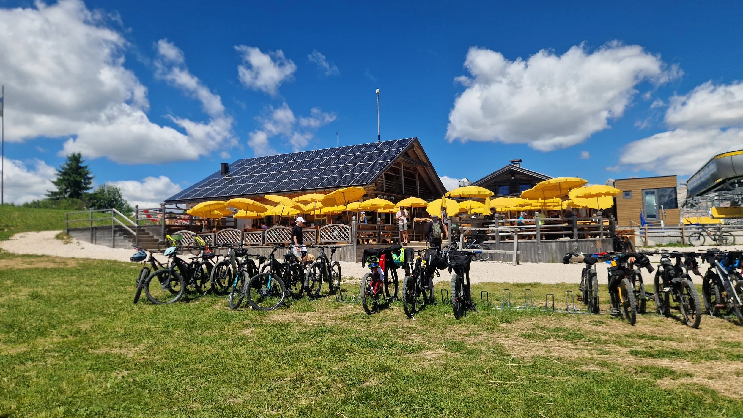 Nach etwa drei Stunden erreichten wir die italienische Grenze. Natürlich durfte ein erster Cappuccino-Stopp nicht fehlen – das gehört einfach dazu. Anschließend ging es über schmale, teils abenteuerliche Bergstraßen weiter zum Pflegerhof in St. Oswald. Bei hochsommerlichen 31 Grad bekamen wir dort eine interessante Führung über den Hof. Der Pflegerhof ist bekannt für seine große Auswahl an Kräutern und Heilpflanzen, die dort in liebevoller Handarbeit angebaut und verarbeitet werden. Neben vielen Informationen zur Wirkung und Anwendung durften wir auch verschiedene Sirupe und Aufstriche probieren, eine gelungene und etwas andere Einstimmung auf die kommenden Bike-Tage.