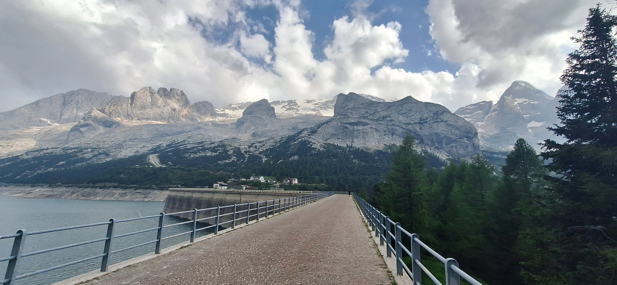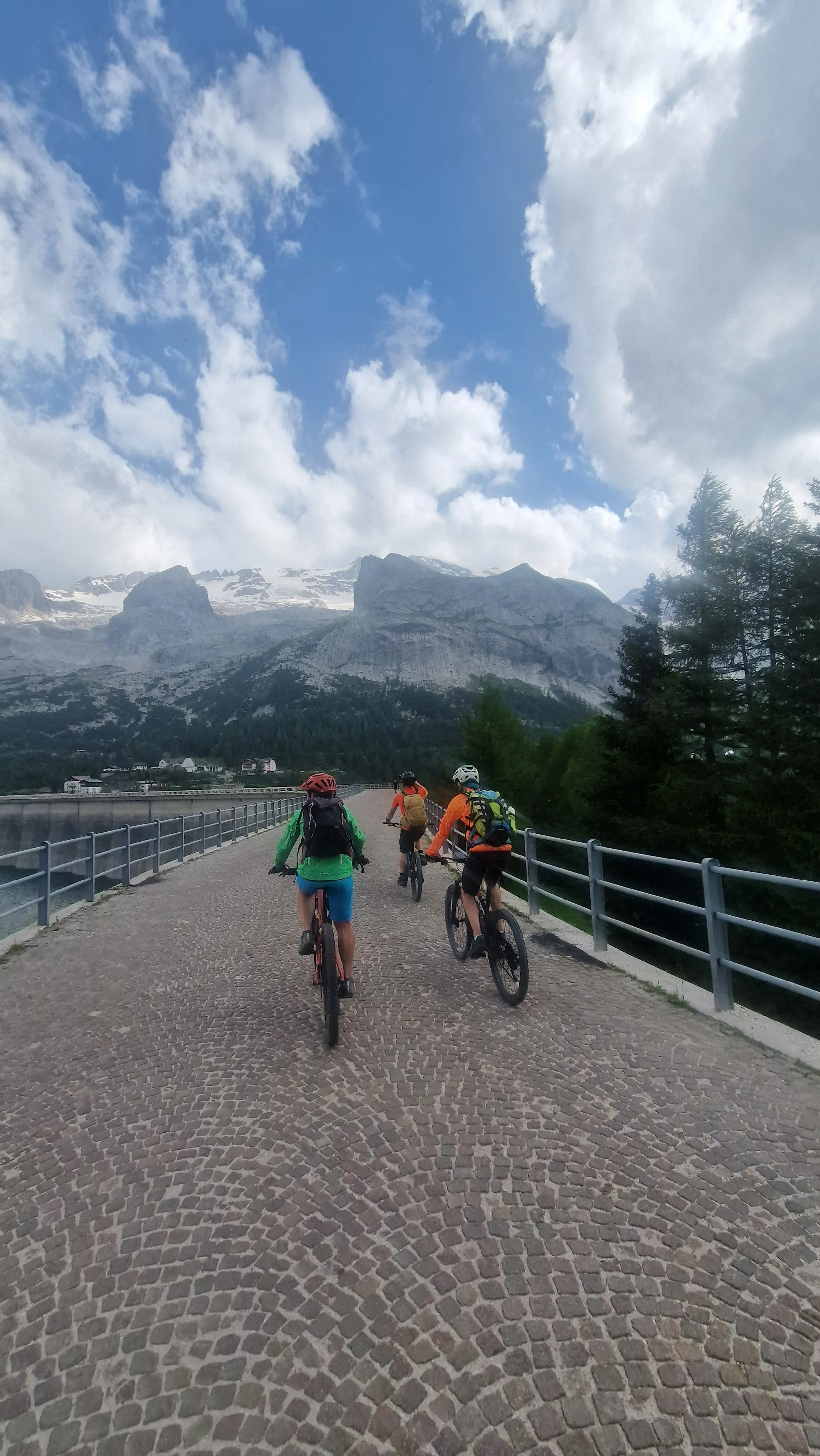 Nach der Führung fuhren wir weiter nach Canazei, das wir gegen Nachmittag erreichten. Im Hotel Andreas konnten wir direkt unsere Zimmer beziehen, und kurz darauf waren auch schon die Bikes bereit für die erste Tour. Ziel war der Lago di Fedaia, ein Stausee am Fuße der Marmolada. Die Auffahrt führte über gut fahrbare Wege, rund 620 Höhenmeter nach oben, in beeindruckender Kulisse.