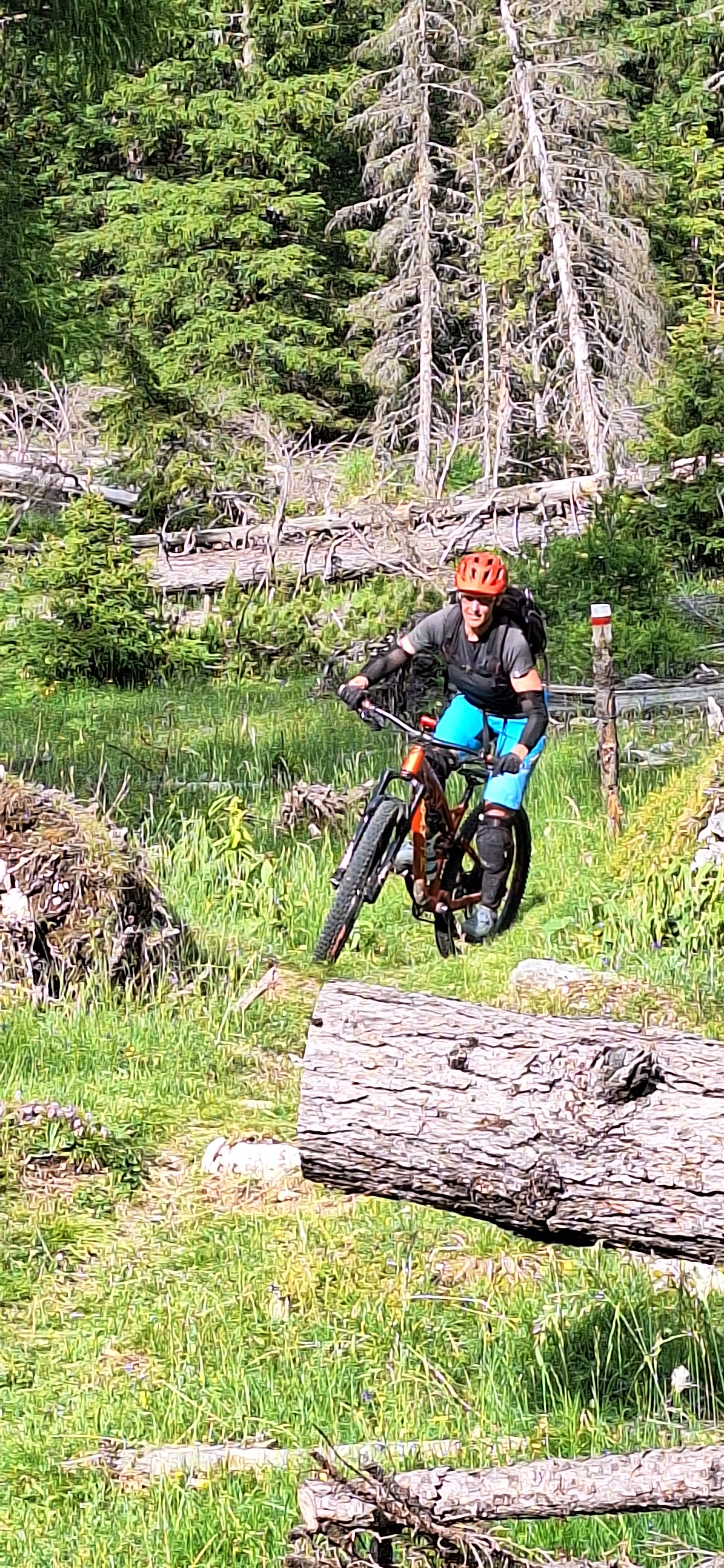 Im Vergleich zum Vortag war die heutige Strecke mit ca. 58 Kilometern und rund 700 zu fahrenden Höhenmetern zwar etwas kürzer, dafür sammelten wir mit Unterstützung der Lifte knapp 4350 Tiefenmeter, ein echtes Abfahrtshighlight. Die Trails waren erneut abwechslungsreich, teils technisch fordernd, aber durchweg schön zu fahren. Die Strecke bot alles, was das Bikerherz höherschlagen lässt: flüssige Abschnitte, verblockte Passagen, Schotterwege, Wurzelteppiche und das alles in einer beeindruckenden Naturkulisse.