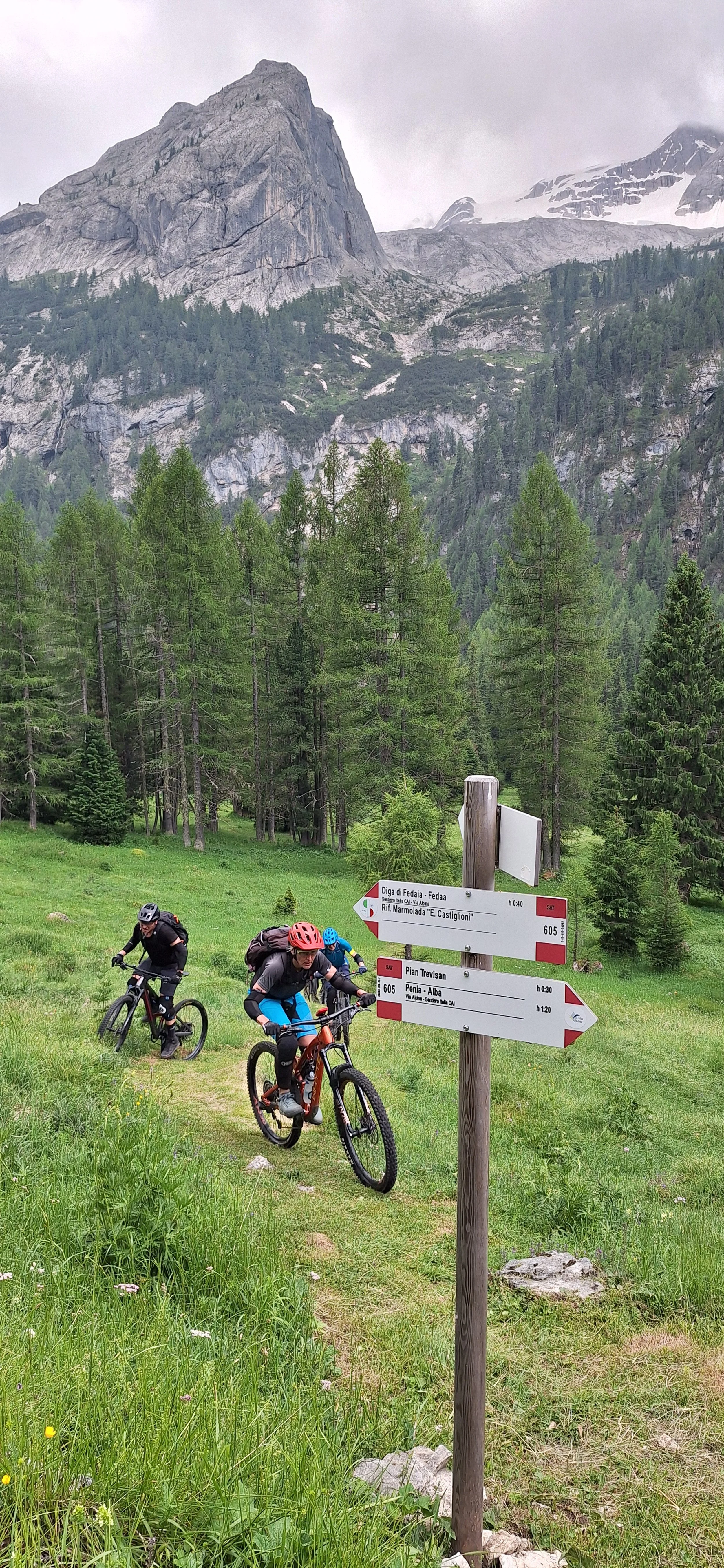 Mit etwas Muskelkater und kleineren Wehwehchen vom Vortag starteten wir in den letzten Tag unserer Dolomiten-Tour. Der Körper war zwar spürbar beansprucht, aber die Vorfreude auf ein paar letzte Trails ließ uns schnell wieder in den Sattel steigen.