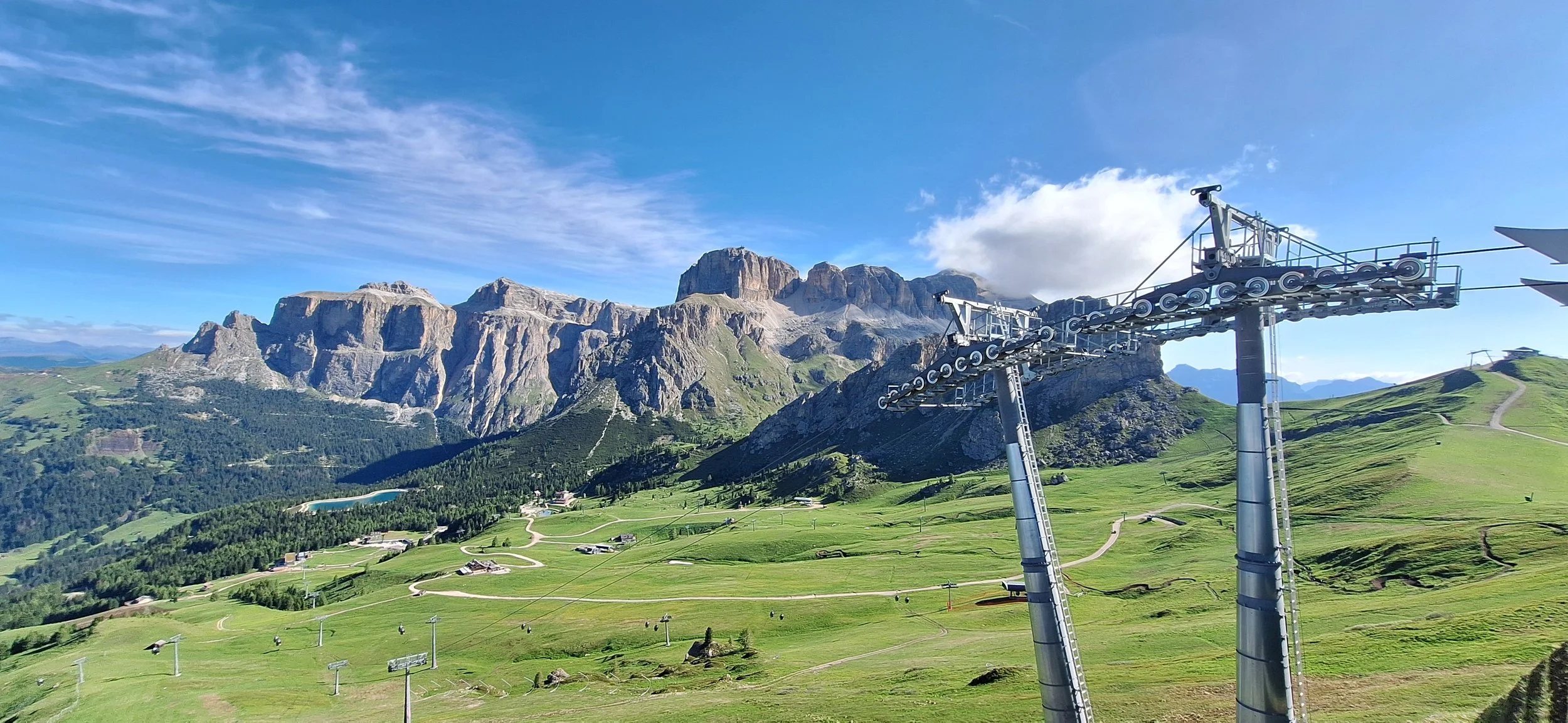 Der zweite Tag startete um 7:30 Uhr mit einem guten Frühstück im Hotel. Gestärkt machten wir uns im Anschluss auf den Weg zur nahegelegenen Liftstation, denn an diesem Tag stand ein Höhepunkt der Region auf dem Programm: die Sellaronda – eine Mountainbiketour rund um das Sella-Massiv.