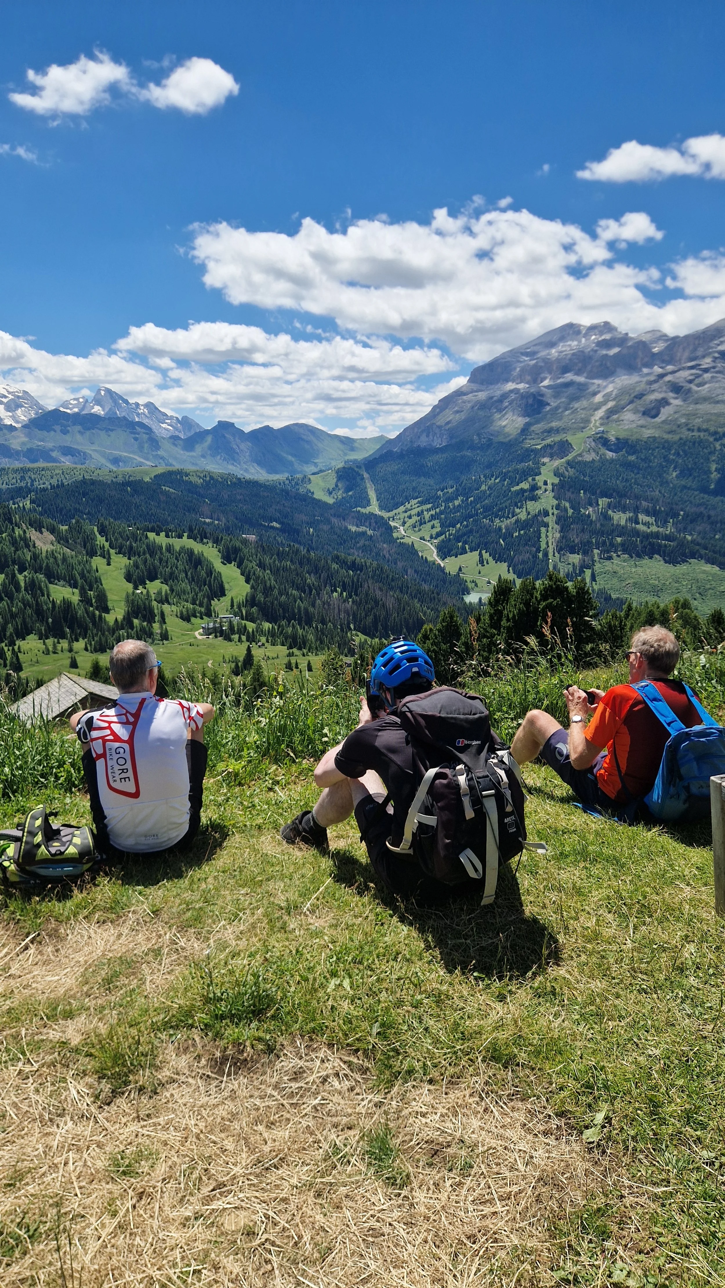 Am Donnerstag, dem 26. Juni 2025, starteten wir mit sieben Personen in zwei Autos vom Bodensee aus Richtung Italien. Mit dabei waren Anni, Markus, Stefan, Archie, Manfred, unser Guide Andreas und ich, Marlon. Ziel der viertägigen Tour waren die Dolomiten rund um Canazei, genauer gesagt die Trails des Sella Massivs, die landschaftlich einiges zu bieten haben.